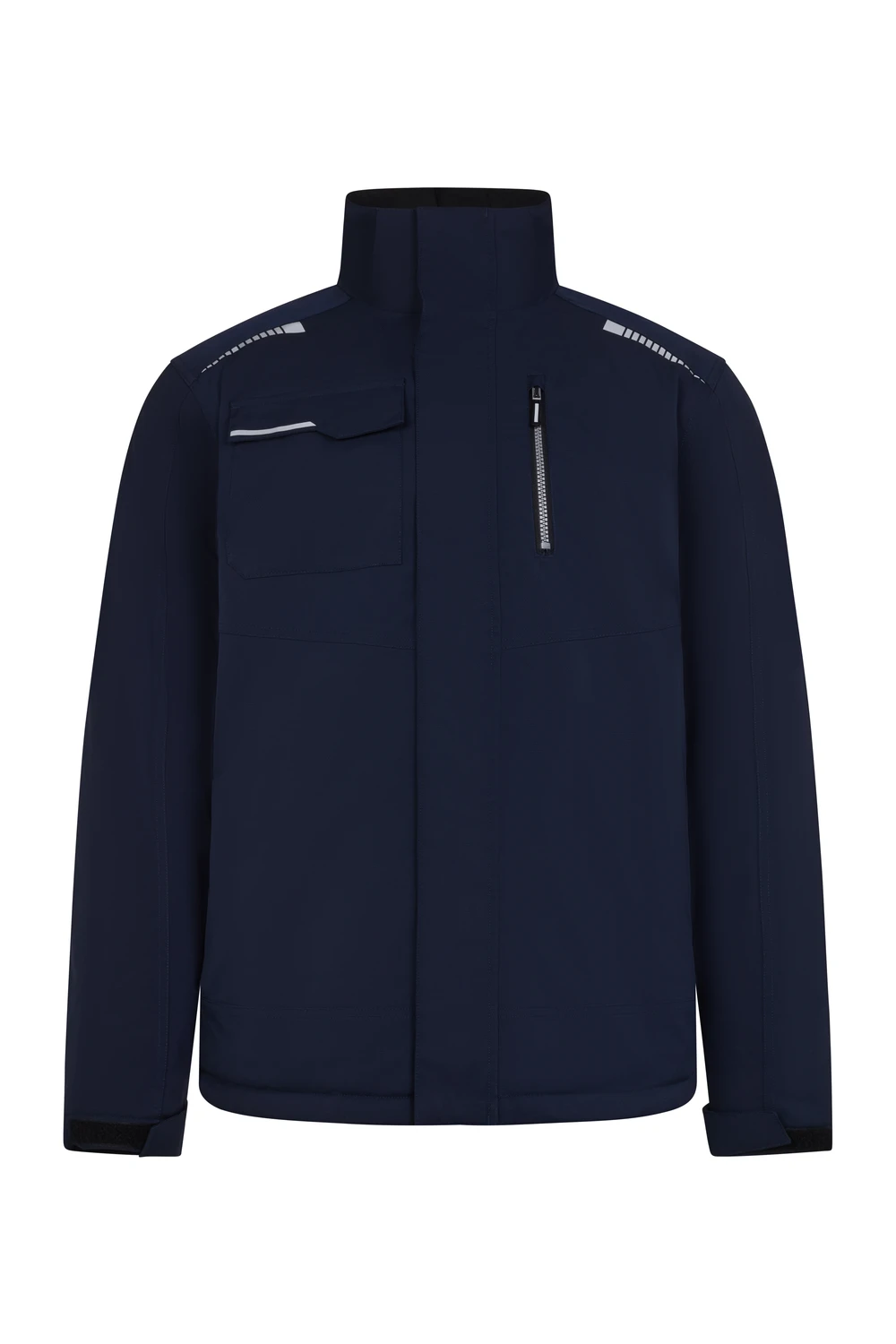 5 bolsillos: 2 bolsillos laterales con cremallera y tiradores reflectantes; 1 bolsillo izquierdo en pecho con cremallera y tirador reflectante; 1 bolsillo derecho en pecho con tapeta y velcro y 1 bolsilo interior con cremallera